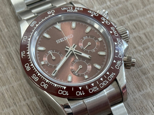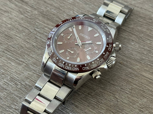Seiko Mod Chocolate Panda 40MM Case W/ Oyster - Chronograph