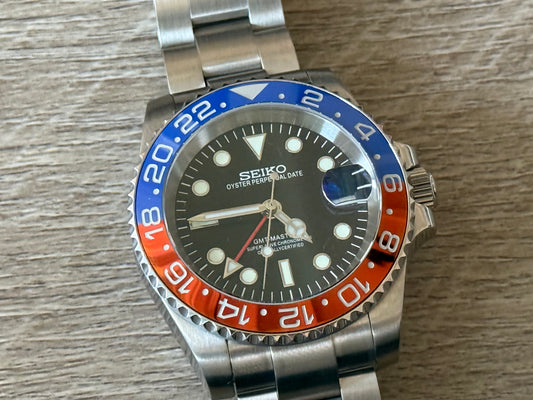 Sold outSeiko Mod Pepsi GMT 41MM on Oyster